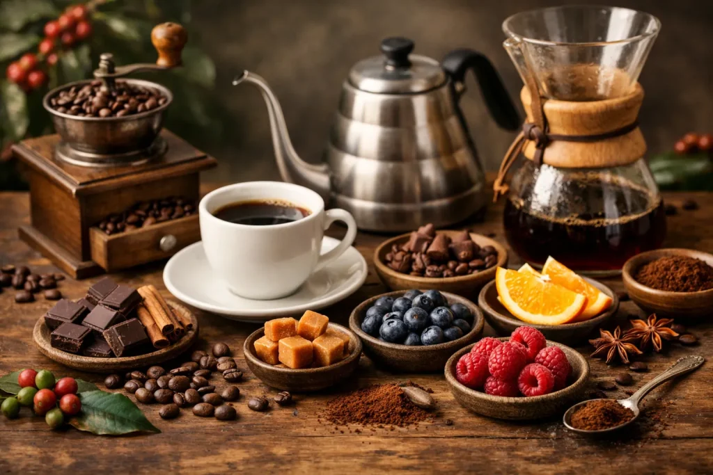 Coffee flavors range from bright fruit to deep chocolate and warm spice. Tasting notes help identify aroma, acidity, body, and aftertaste so drinkers can pick beans and brewing styles they like.